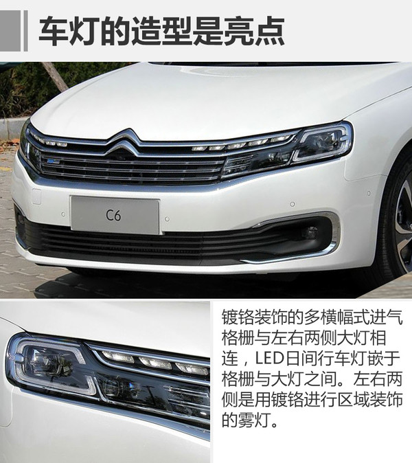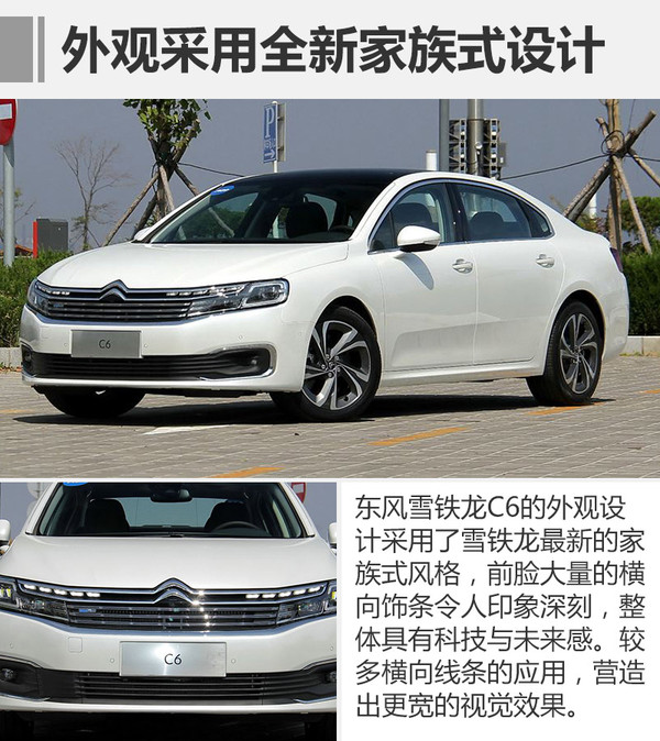 我们再来看一下东风雪铁龙C6的表现。作为东风雪铁龙旗下最高级别的轿车,全新C6将时尚的外观、舒适的座驾、奢华的内饰以及诸多科技感十足的配置融为一身,更是在轴距、配置等方面与C级车甚至豪华车相媲美。