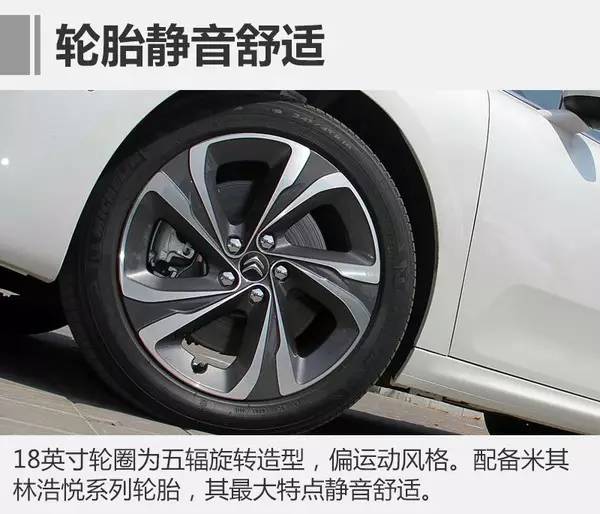 轮圈为双五辐旋转造型,有一些偏向运动风格,18寸的轮圈不是很显大。轮胎为米其林浩悦系列,规格为245/45 R18。该轮胎最大特点就静音,降低胎噪,有效提升了安静的驾驶环境,这对高端车来讲,也是必要的。