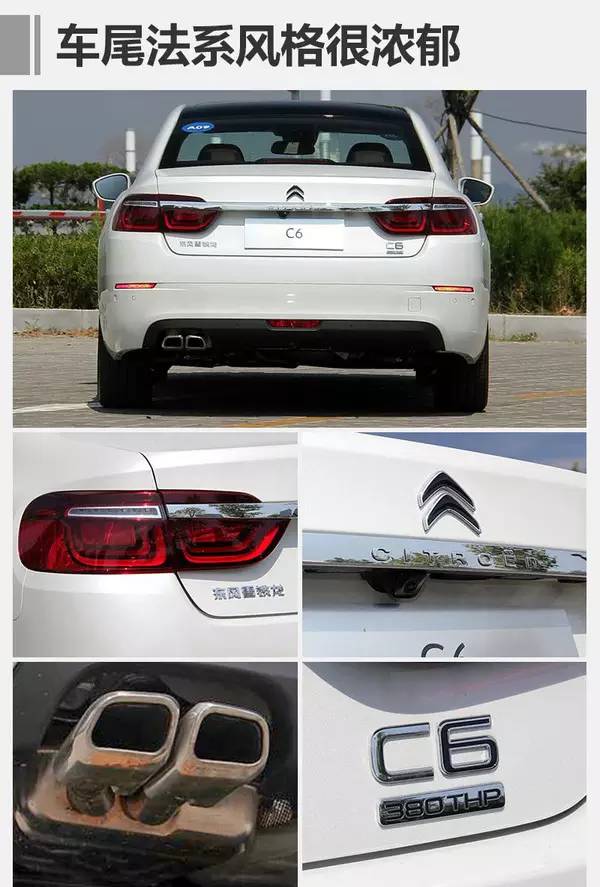 东风雪铁龙C6的尾部造型整体圆润饱满,没有用太多复杂的线条进行修饰,视觉上也没有太过张扬,大部分消费者都可以接受。而且中国的用户很喜欢车身上有镀铬的装饰,所以C6进入中国市场后,将镀铬装饰条贯穿车尾整体,也大大满足了国人消费者的需求。尾灯的设计同样采用了雪铁龙全新的家族设计,为LED光源,全新的双U型光带造型很有辨识度,也有一定的豪华感。