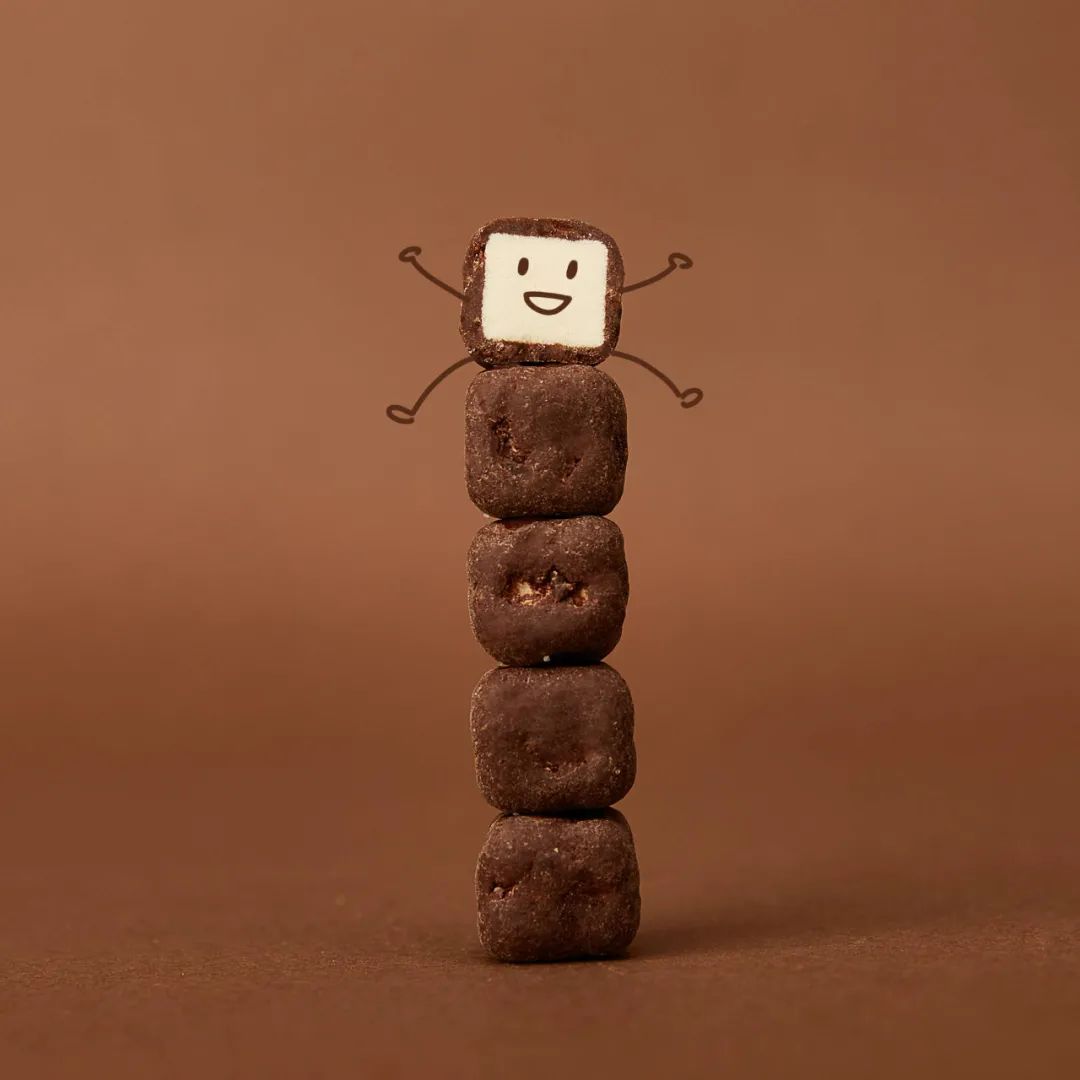 顾名思义,燃魂豆府已上线的零食是以豆腐为核心原料,外面包裹一层巧克力脆皮。光用肉眼来看,这个脑洞大开的搭配和普通夹心巧克力区别不大,但原本是巧克力和奶油的内芯被换成了冻干豆腐。
