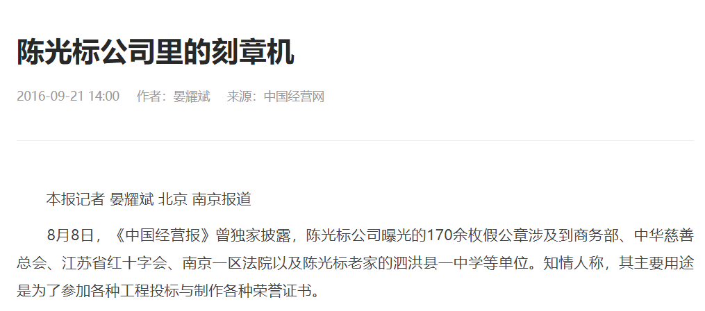 另一件说的是,警方在陈光标的公司搜出了170余枚假公章。这些公章涉及商务部、中华慈善总会、江苏省红十字会、南京一区法院等。