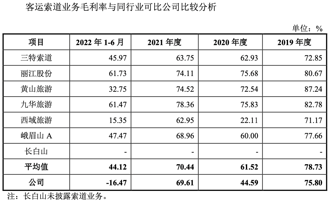 然而客运索道实际是个高毛利的业务,如果以疫情爆发前来看,2019年,鄂旅股份的索道业务毛利率达到75.8%,而A股旅游板块公司的索道业务毛利率也基本达到70%以上。