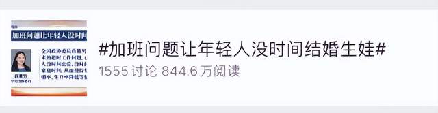 像琉璃这样生活在一线城市,因为加班和工作重压之下,没时间也没心情恋爱的人不在少数。微博话题#加班问题让年轻人没时间结婚生娃#冲上热搜榜,引得844.6万人的阅读和讨论。
