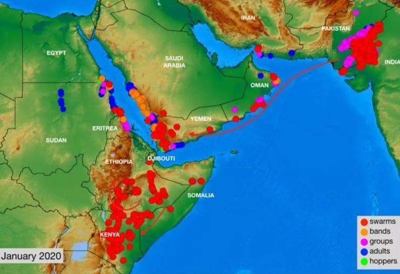 今年2月,西非、东非和南亚20多个国家受到蝗灾影响,多国宣布进入紧急状态。
