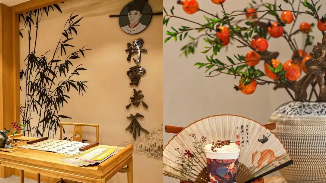 之所以这么说,首先是非常突出的“国风”,放在奶茶一条街里与众不同:
