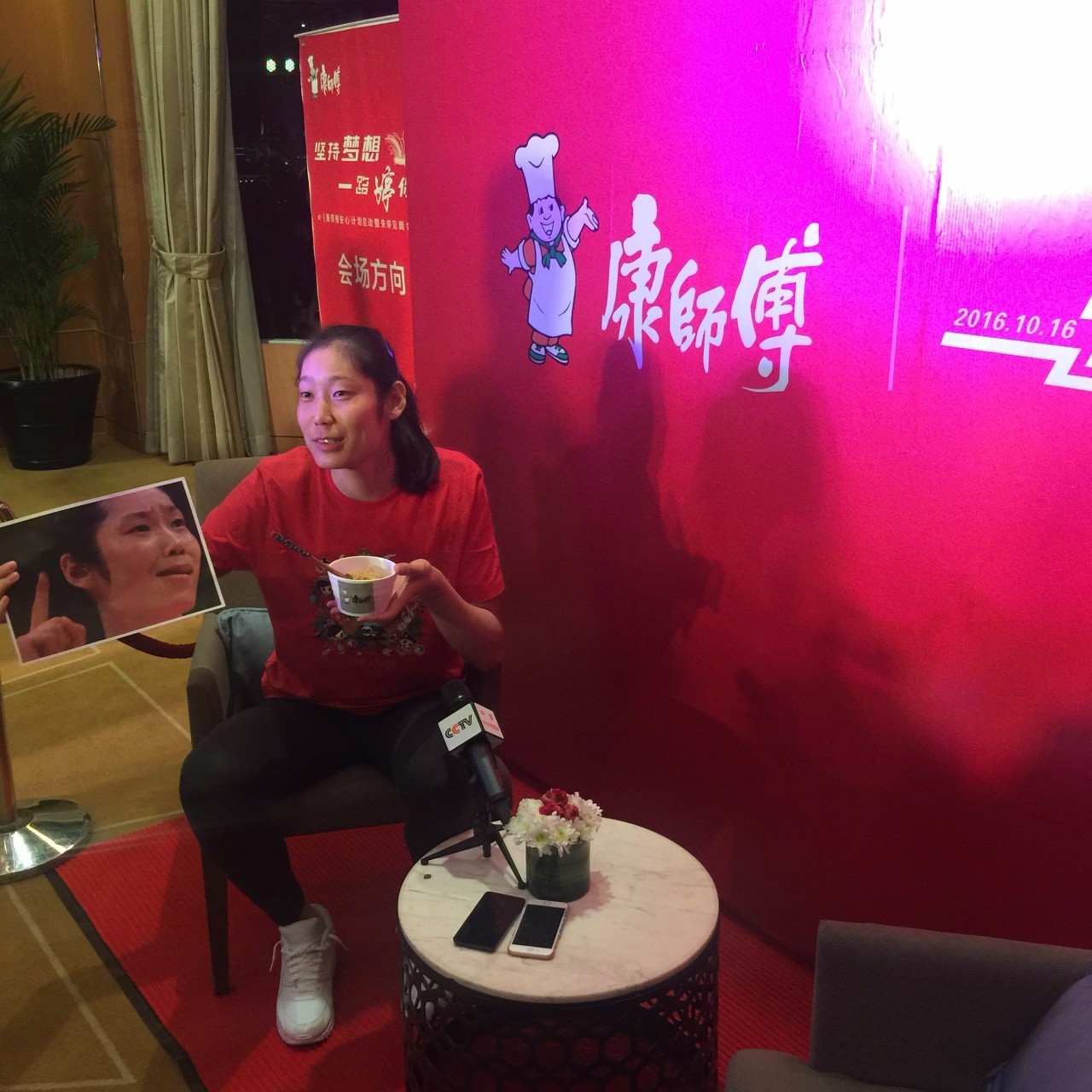 经过一下午高强度的训练,朱婷的体能消耗很大 ,她是真饿了,但是因为时间安排比较紧,没空去餐厅吃饭。于是趁着接受采访的功夫,朱婷端起康师傅为她煮的面大快朵颐,边吃边聊。令人欣慰的是,这碗面正是康师傅请厨师专门为她烹饪的,未来一个赛季,即便身处土耳其,她也能品尝到家乡味道。