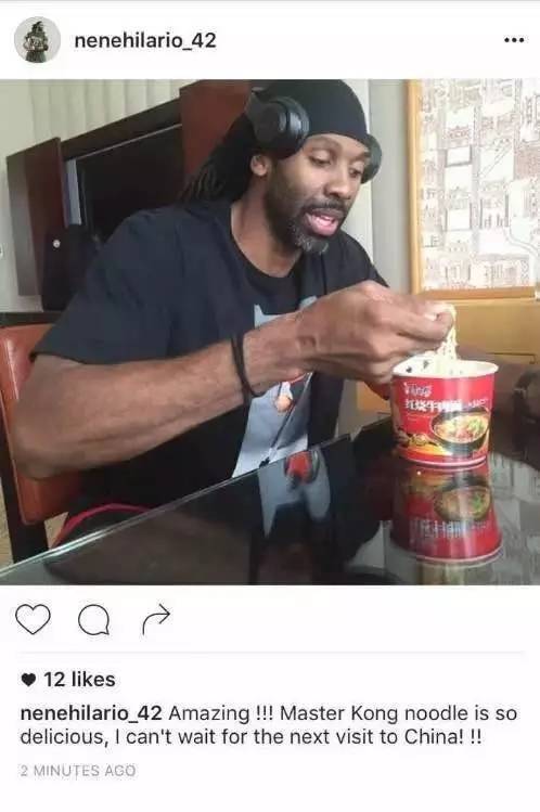 今年NBA中国赛期间,火箭众将一同登上长城,在新秀萨姆·德克尔的自拍视频中,身后端着康师傅泡面的阿里扎“意外”出镜头,同时,火箭的另外一名球员内内·希拉里奥在自己的Instagram上晒了一张吃泡面的照片,并迅速在网上火了起来。不少业界人士称赞康师傅的营销做得到位,但在接受体育大生意记者采访时,贾先德否认这是康师傅有意为之,“我还真不知道,我有去现场看比赛,但我也不知道他们怎么吃了方便面。”