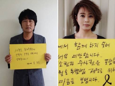 当时,韩国政府在救援态度上的反反复复引发不满,率先影响到的是娱乐圈。电影界的各项活动全部叫停、电视综艺节目全线停播、整个韩国音乐界取消活动安排。为此,有多达594名韩国艺人参与抗议因事故处理不当的相关活动。