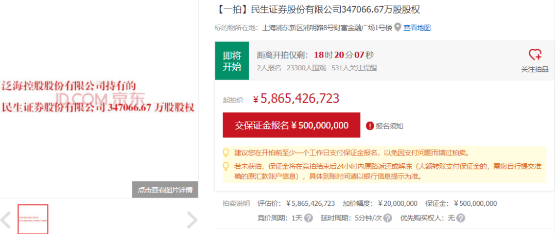 就在民生证券35亿股权被公开拍卖还剩2天的时间,这起拍卖却发生了一些变数。