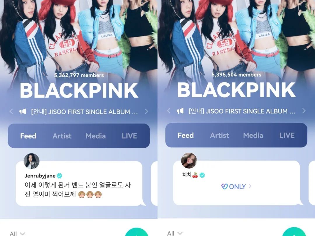 反观Weverse,不论是BTS还是BLACKPINK,每月基本都会发几条独家动态,以及短则几分钟,长则一个多小时的直播内容,与粉丝保持互动,确保粉丝在平台上获得其他平台所没有的体验。