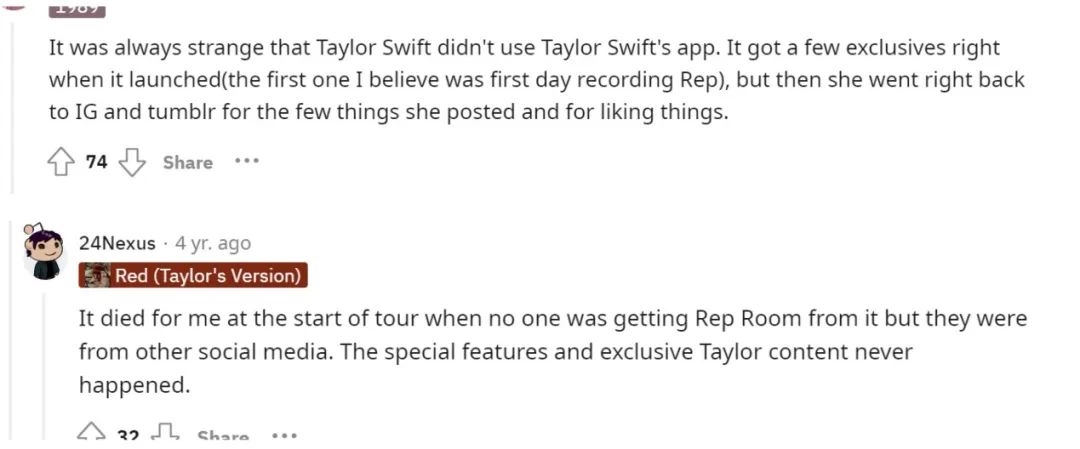 图注:Taylor Swift粉丝当时对其粉丝APP的抱怨