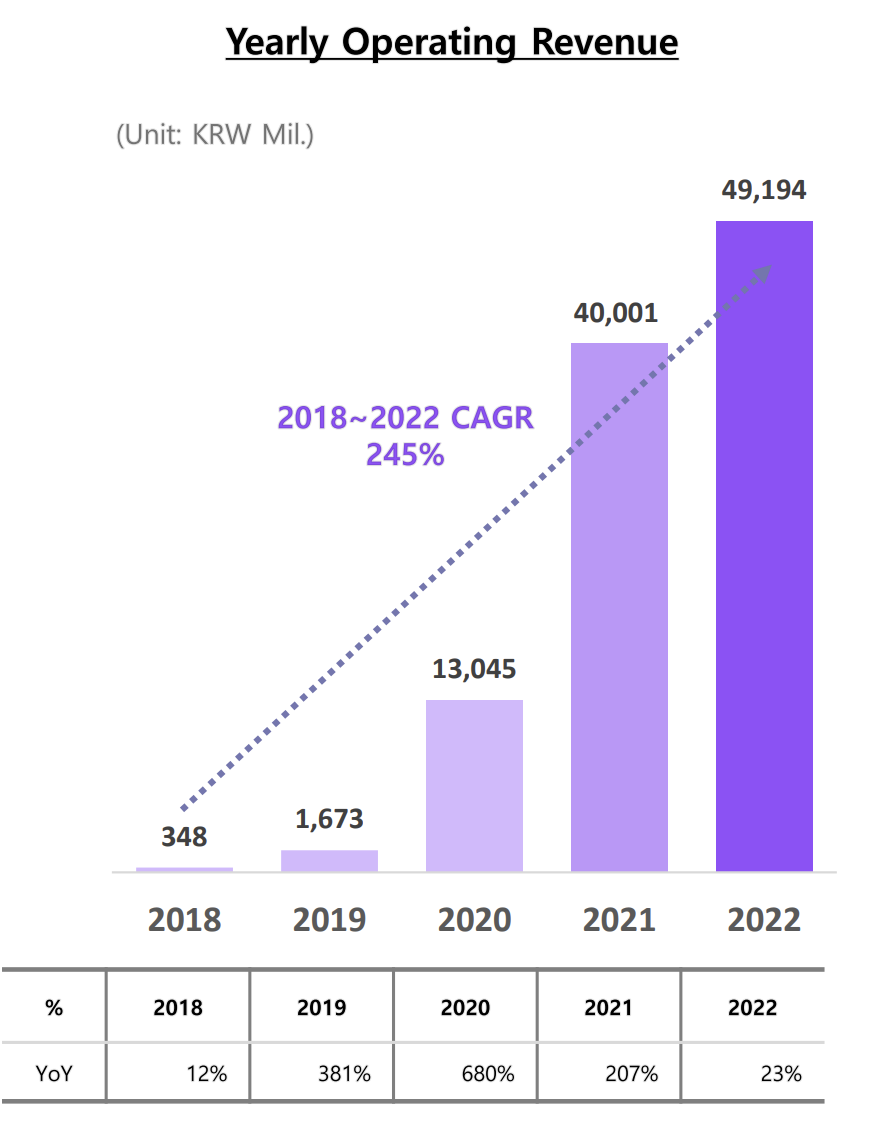 虽然听起来很简单,仅仅这一个功能、仅靠一百多万付费用户,在2022年就创造了491亿韩元(0.37亿美元)的收入,并且订阅用户连年翻番,从2021年的50多万,到现在已经超过200万。