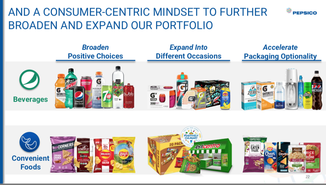 他表示,希望百事公司的产品能更多地用于膳食场景中,作为配菜,以及成为食谱的一部分。他又举例道,该公司正在更多地尝试乐事如何能在世界各地的许多菜肴中替代土豆,多力多滋如何成为制作披萨的一部分食材。