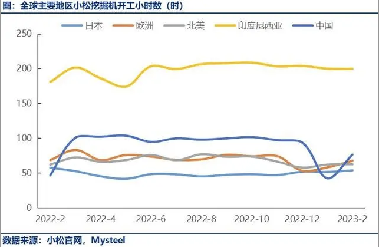根据小松官网数据,2月小松挖机中国开工小时数为76.4,同比增长61.4%,为近一年来首次同比转正。