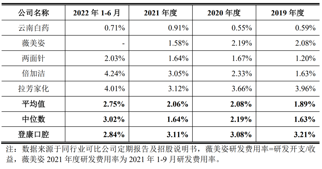 招股书提及,随着消费品行业市场竞争加剧,研发对于企业提升产品竞争力愈加重要,2022年1-6月,可比公司研发投入占比有所上升。