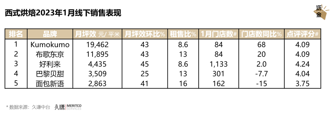 西式烘焙也值得关注,上榜品牌的坪效环比均有所增长。