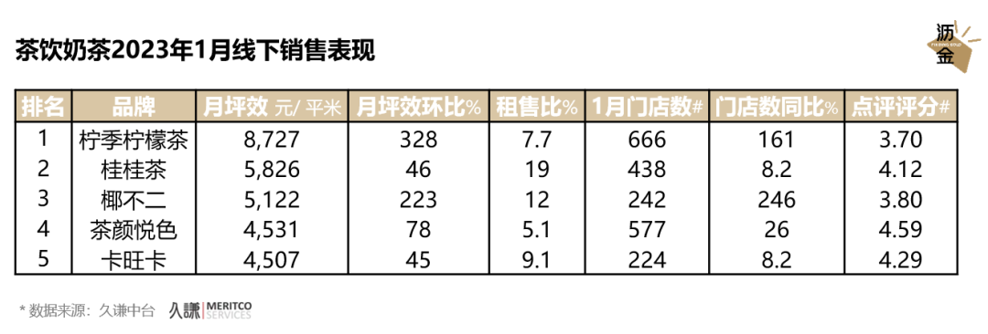 柠季柠檬茶的增长势头迅猛,其坪效同比、环比都同步提升;椰不二的门店拓展速度极快,坪效环比、同比增长幅度也较大。
