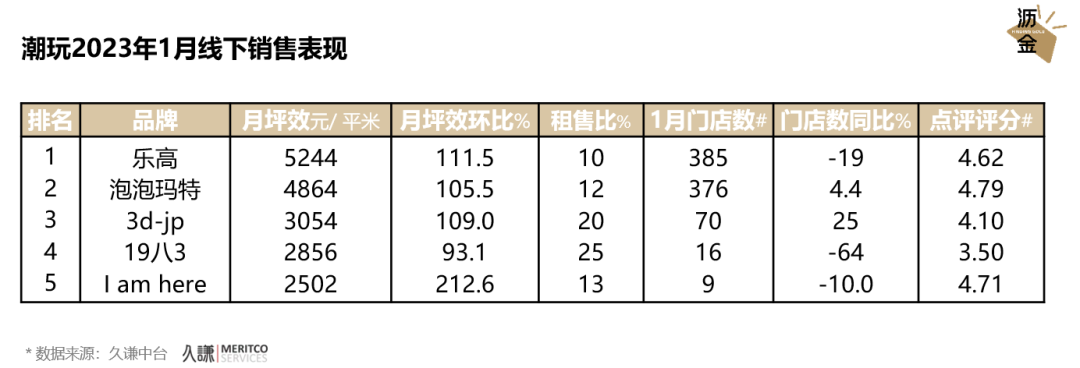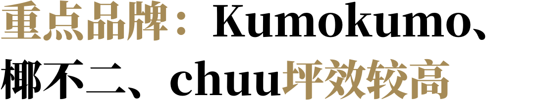 去年压抑的潮玩品类在今年也得以快速复苏,各个品牌的坪效环比均提升迅速。