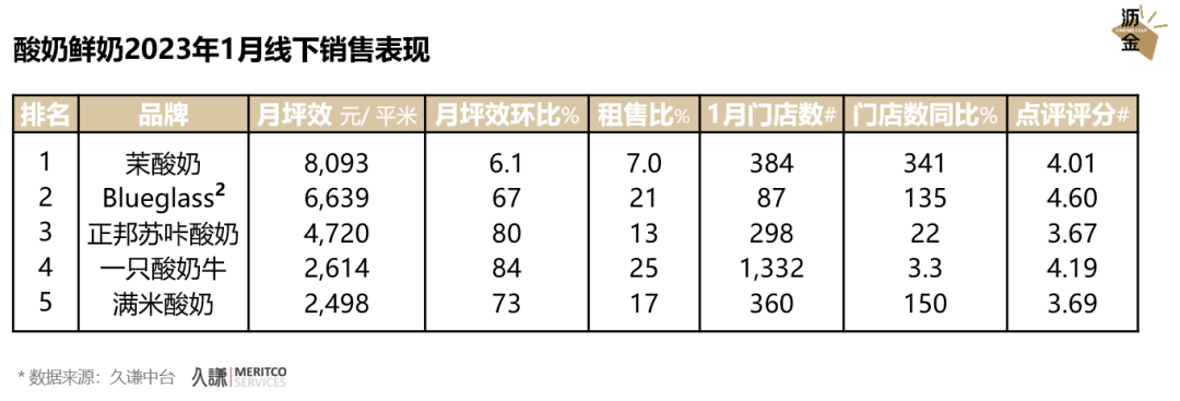 其中茉酸奶坪效居高不下,势头迅猛,满米酸奶坪效的同比、环比均增长。