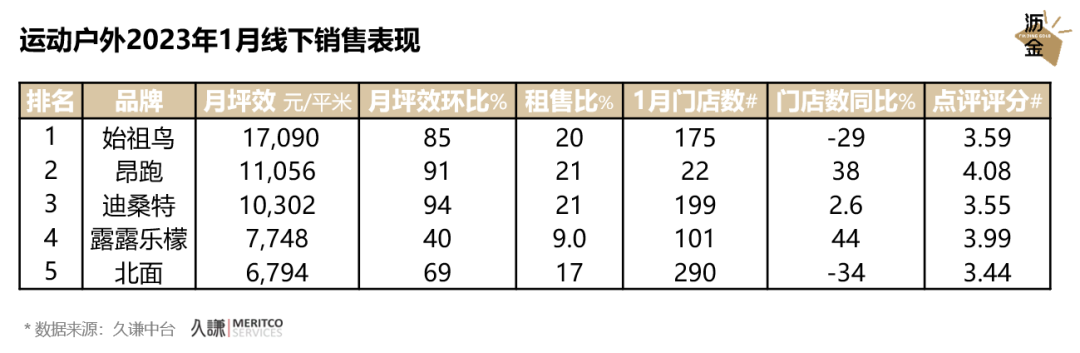 始祖鸟的坪效居高不下,这主要源于冬季的运动外套销量较好。而瑞士品牌昂跑首次进入高坪效榜单,成为赛道黑马。