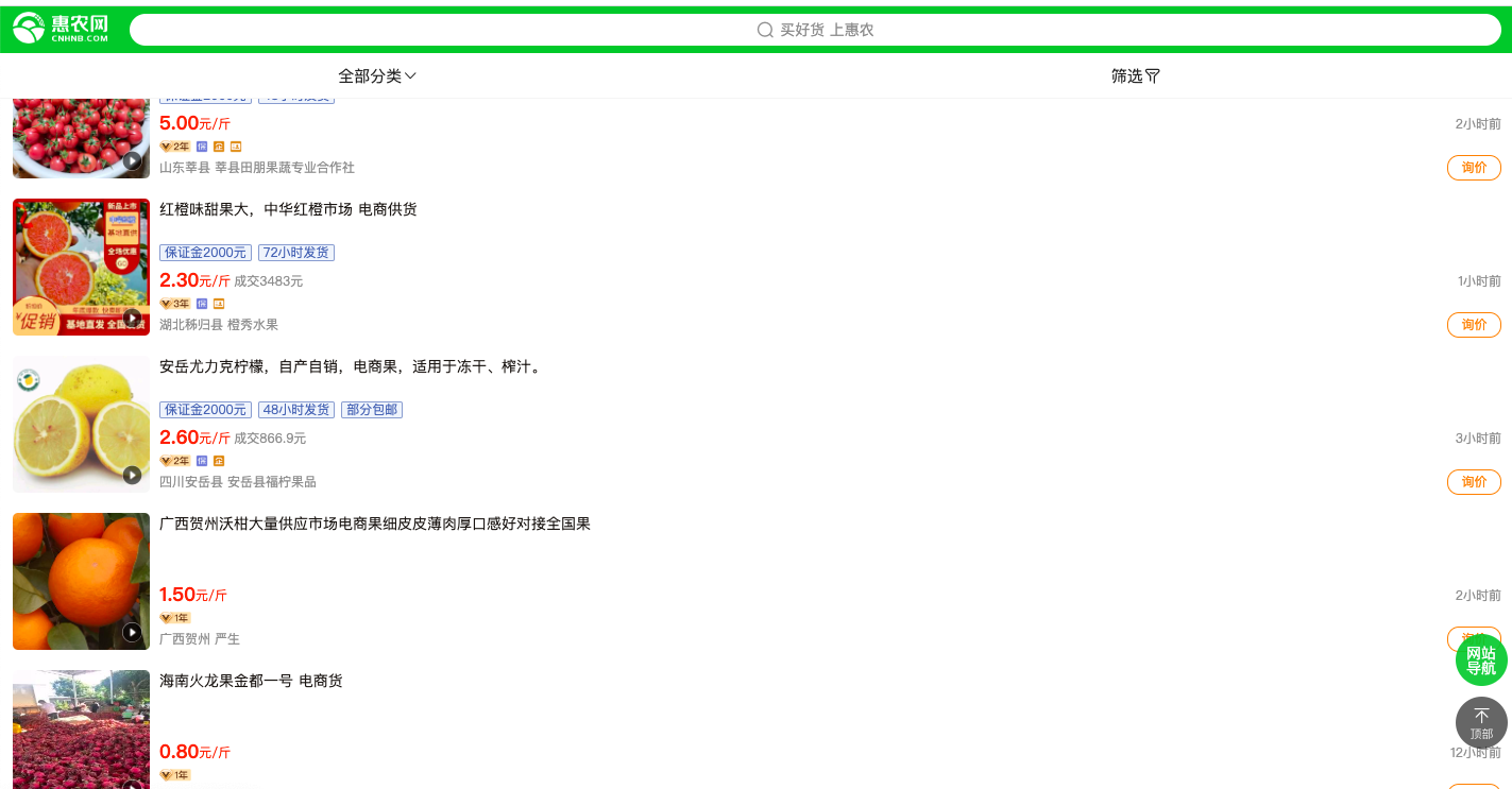 电商平台上,次果更为普遍,以线上农产品批发交易平台惠农网为例,不少卖家都在链接中直接注明“电商果”或者“电商货”,这类商家多是水果产地代办,向电商平台卖家批发水果或提供一件代发业务。
