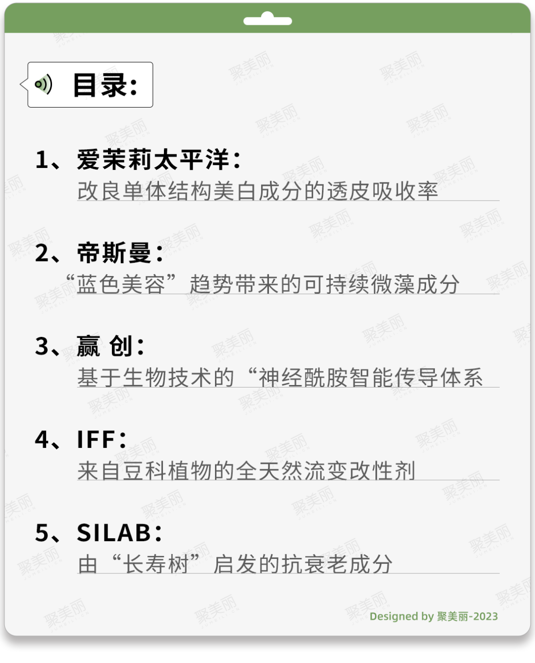 本期优选了各个原料公司的最新产品,这些来自不同功效方向的原料都各具特色,如果你感兴趣,接着看下去吧~
