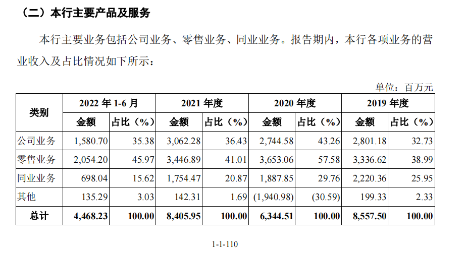 2019年-2022年上半年,顺德农商行零售业务分别实现营收33.37亿元、36.53亿元、34.47亿元、20.54亿元,分别占总营收的比例为38.99%、57.58%、41.01%、45.97%。