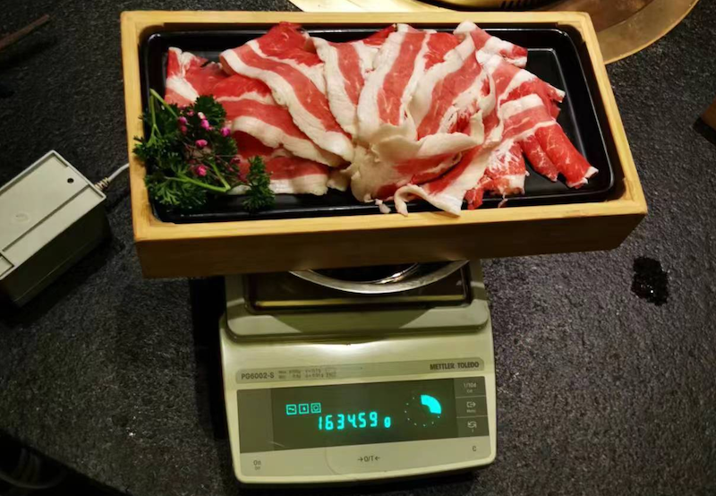 检查发现,“湊湊肥牛”在菜单标注“150克”,实际称重140.43克,偏差-9.57克;“湊湊和牛”在菜单标注“200克”,实际称重177.90克,偏差-22.10克,商品实际重量值与结算重量值之差超过规定负偏差(按照规定,肉类称重范围小于2.5千克的,其负偏差允许值最高为5克),涉嫌违反《零售商品称重计量监督管理办法》。