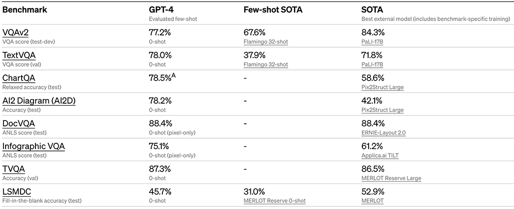 OpenAI通过在一套狭窄的标准学术视觉基准上评估GPT-4的性能来预览。但这些数字并不能完全代表它的能力,因为OpenAI不断发现该模型能够处理的新的和令人兴奋的任务。