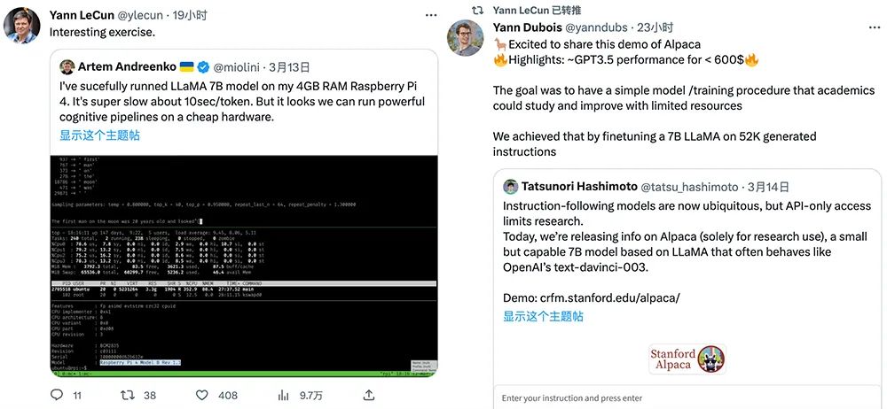 这两个项目都得到了图灵奖得主、深度学习三巨头之一、Meta首席AI科学家杨立昆(Yann LeCun)的转发支持。
