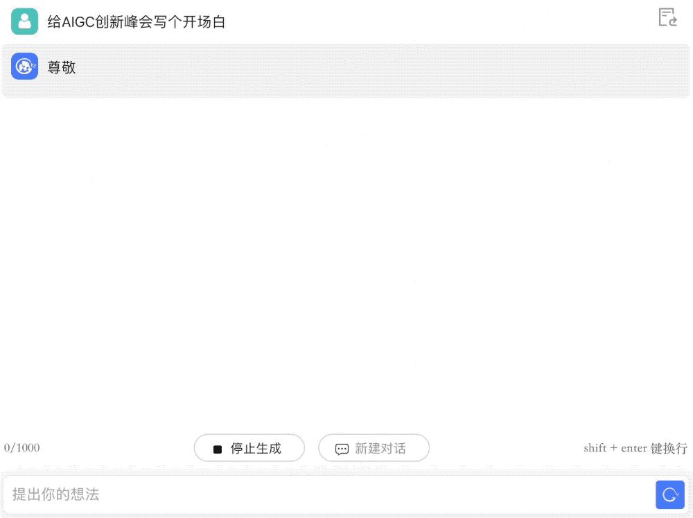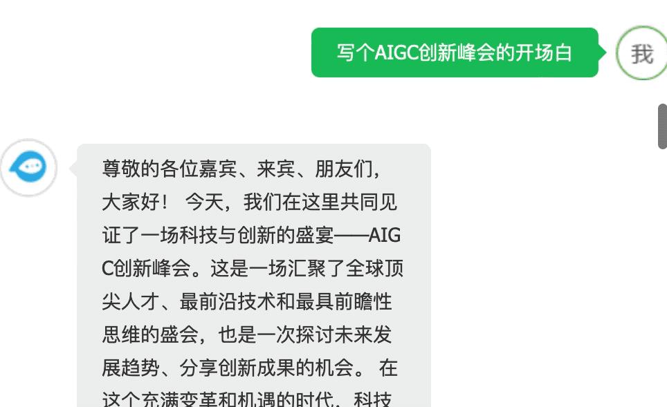 让它给AIGC创新峰会写个开场白,成文速度飞快,指出错误后能迅速修改。