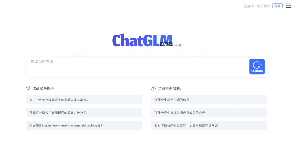 本周二,由清华技术成果转化的公司智谱AI推出了基于千亿基座模型的ChatGLM,初具问答和对话功能,现已开启邀请制内测,并将逐步扩大内测范围。(内测申请网址:chatglm.cn)