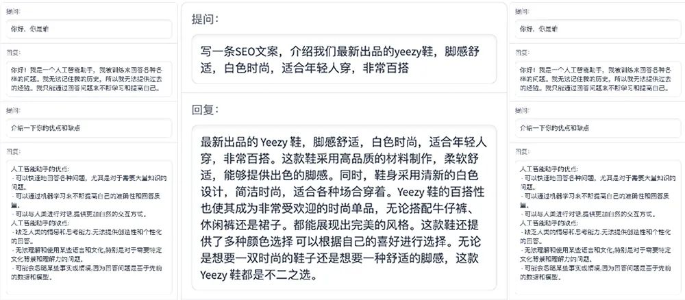 (3)较弱的多轮对话能力:上下文理解能力还不够充分,在面对长答案生成和多轮对话的场景时,可能会出现上下文丢失和理解错误的情况。