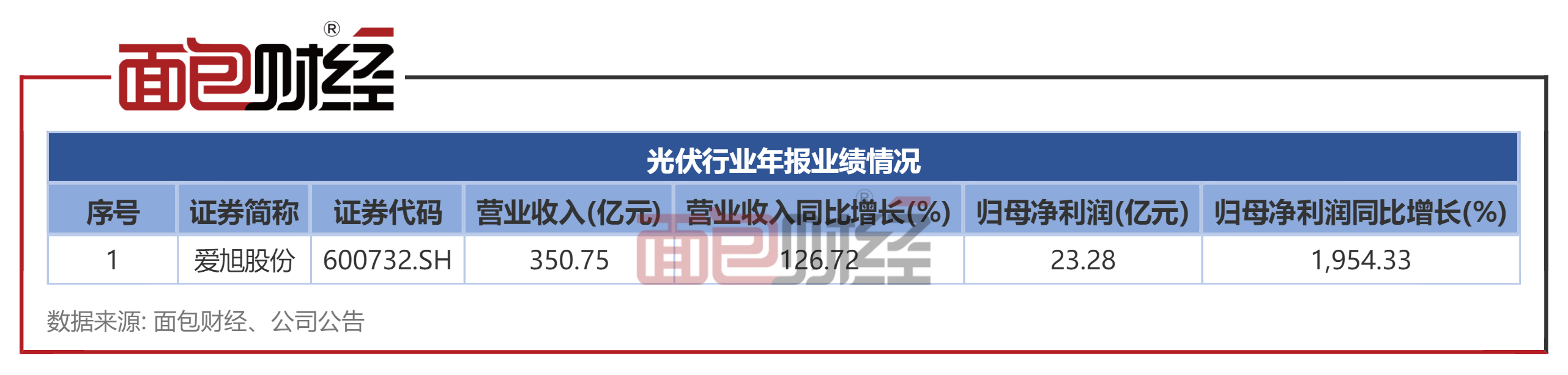 2023年3月14日,爱旭股份发布了2022年年报,公司全年实现营收350.75亿元,同比增长126.72%;归母净利润为23.28亿元,同比增长1954.33%。