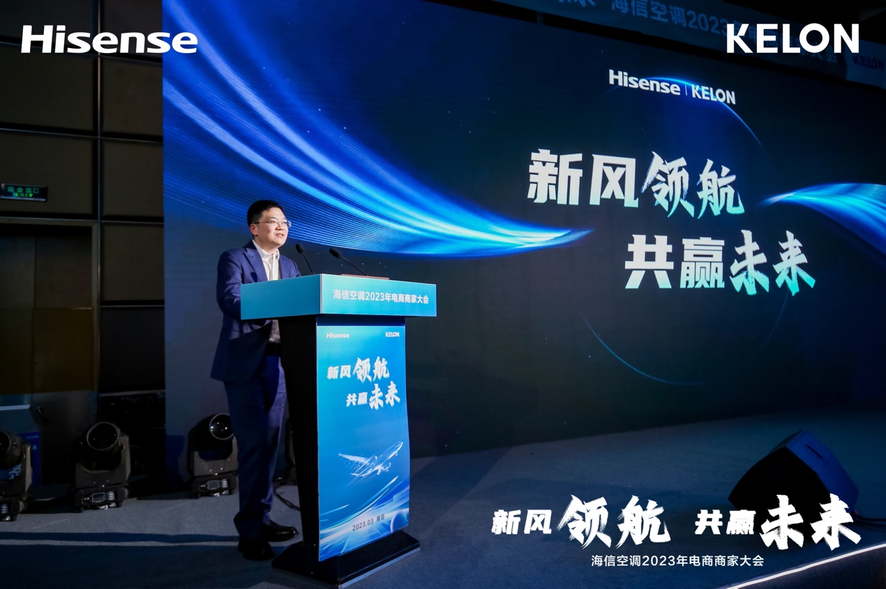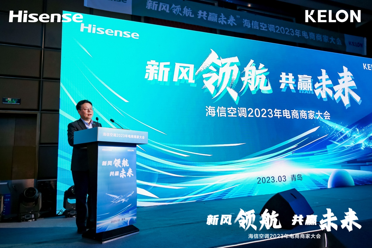 3月13日,海信空调2023年电商商家大会在青岛隆重举行。会议以“新风领航,共赢未来”为主题,海信家电集团公司相关业务领导以及全国各地各大渠道的百余名电商核心经销商参加了此次会议。据了解,这是海信空调近年来首次组织的大规模线上核心经销商家会议。