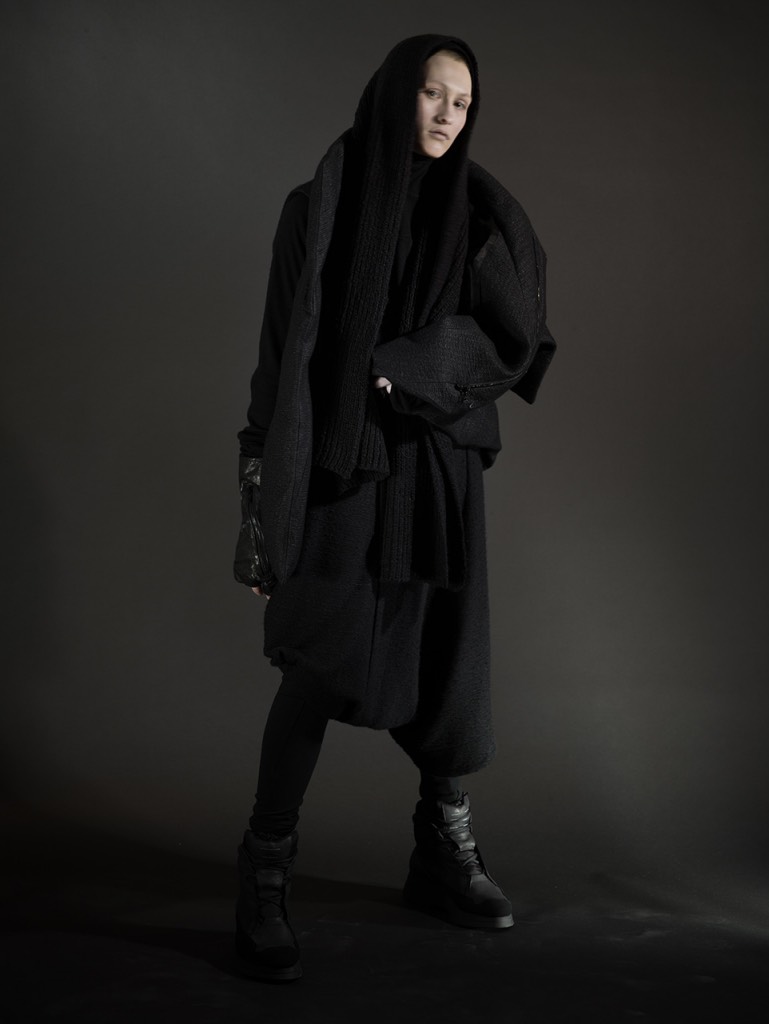 从未受过专业训练的堀川达郎,将时装设计视为“像雕塑一样的过程”,为了更直接地表达,他礼貌性地跨过现场日语翻译人员的解释,用这句简单的英语告诉我。2008年,_JULIUS开始在巴黎举办时装秀,和Ann Demeulemeester、Rick Owens等品牌一样,_JULIUS被冠以先锋(Avant Garde)以及国人惯用的“暗黑”风格。尽管是来自亚洲的品牌,但出于对地下音乐、工业设计和宗教以及诸如《亚基拉》(Akira)、《银翼杀手》等科幻电影的喜好,堀川达郎率领下的_JULIUS从不拘泥于东方式的审美。