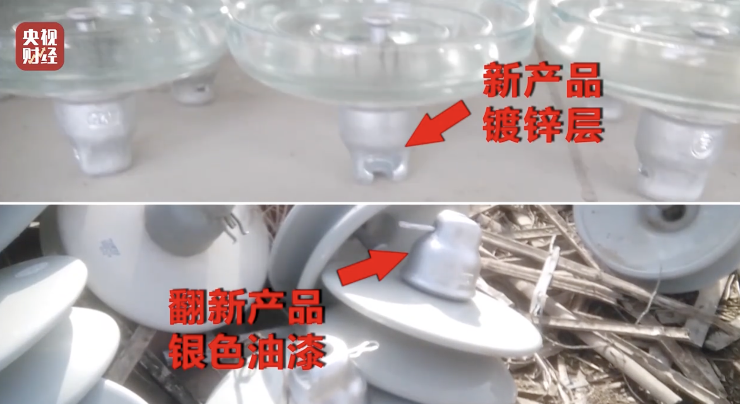 绝缘子相关国家标准及行业标准中,对绝缘子的锌层厚度有明确规定。但庆荣公司的绝缘子镀锌层厚度无法达到国家标准。该公司相关负责人表示,他们的翻新只是简单地清洗盘体表面,给已经生锈的铁头喷上银色的油漆。