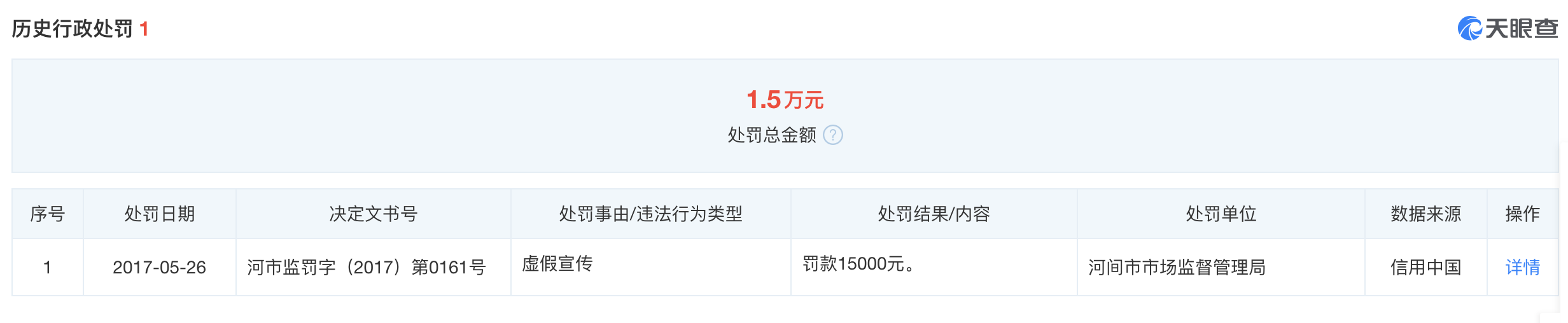 历史行政处罚中,明发公司在2017年还因虚假宣传被罚1.5万元。