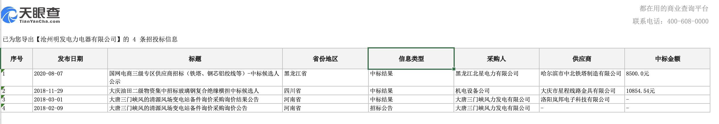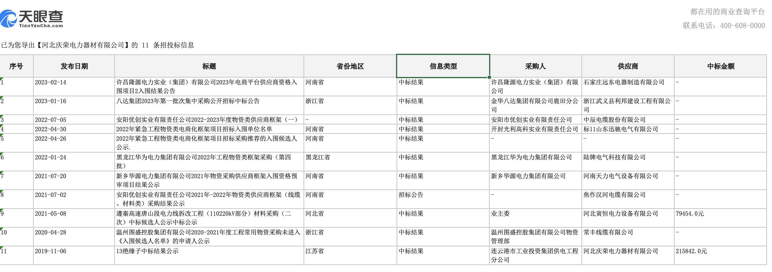 天眼查APP显示,庆荣电力曾参与招投标项目11次。
