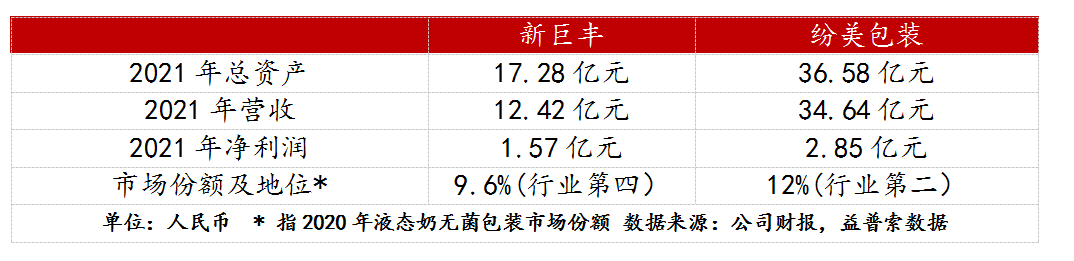 交易完成后,新巨丰将成为纷美包装的第一大股东。这意味着中国液态奶无菌包装市场行业老四将逆袭成为行业老二的大股东。