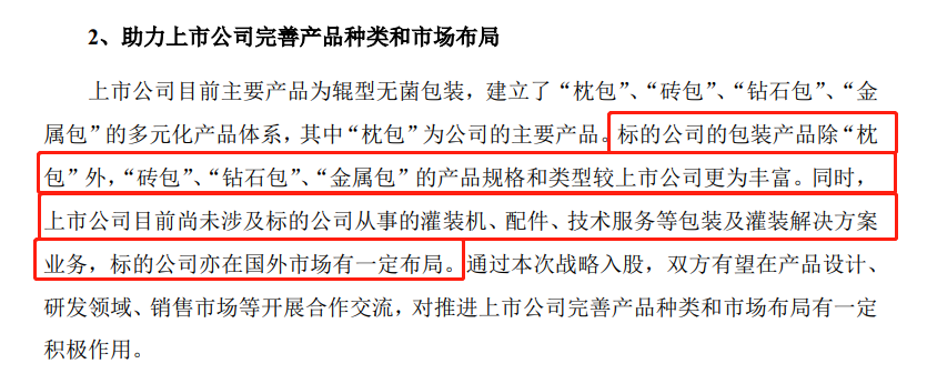 从收购目的来看,新巨丰重大资产购买预案公告中也证实了收购纷美包装就是弥补自身的业务短板的事实。
