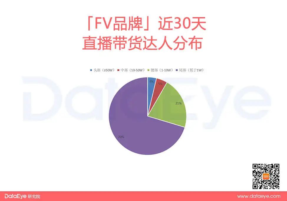 根据DataEye-EDX数据显示,FV品牌在近30天与108位达人合作,从达人的粉丝数来看,目前主要集中在10w粉丝以下的腰尾部达人。