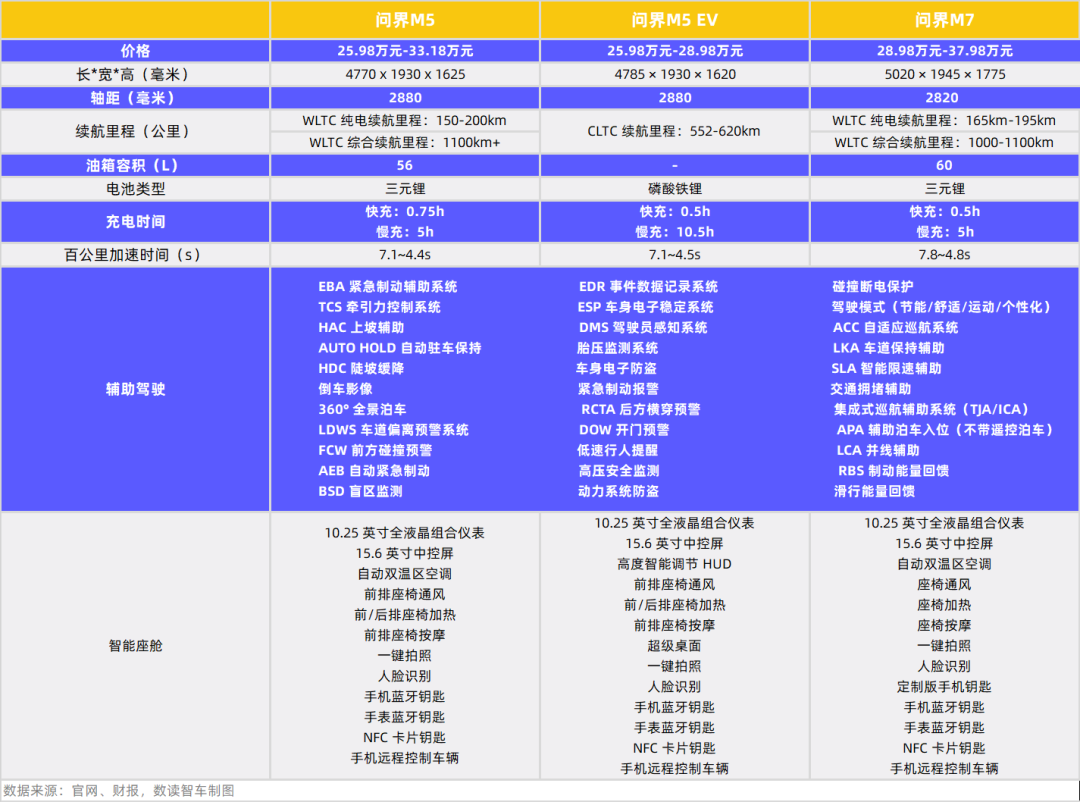 目前,双方合作发布了3款车型:问界M5、问界M5 EV、问界M7,也是目前赛力斯主要在售的新能源车型。