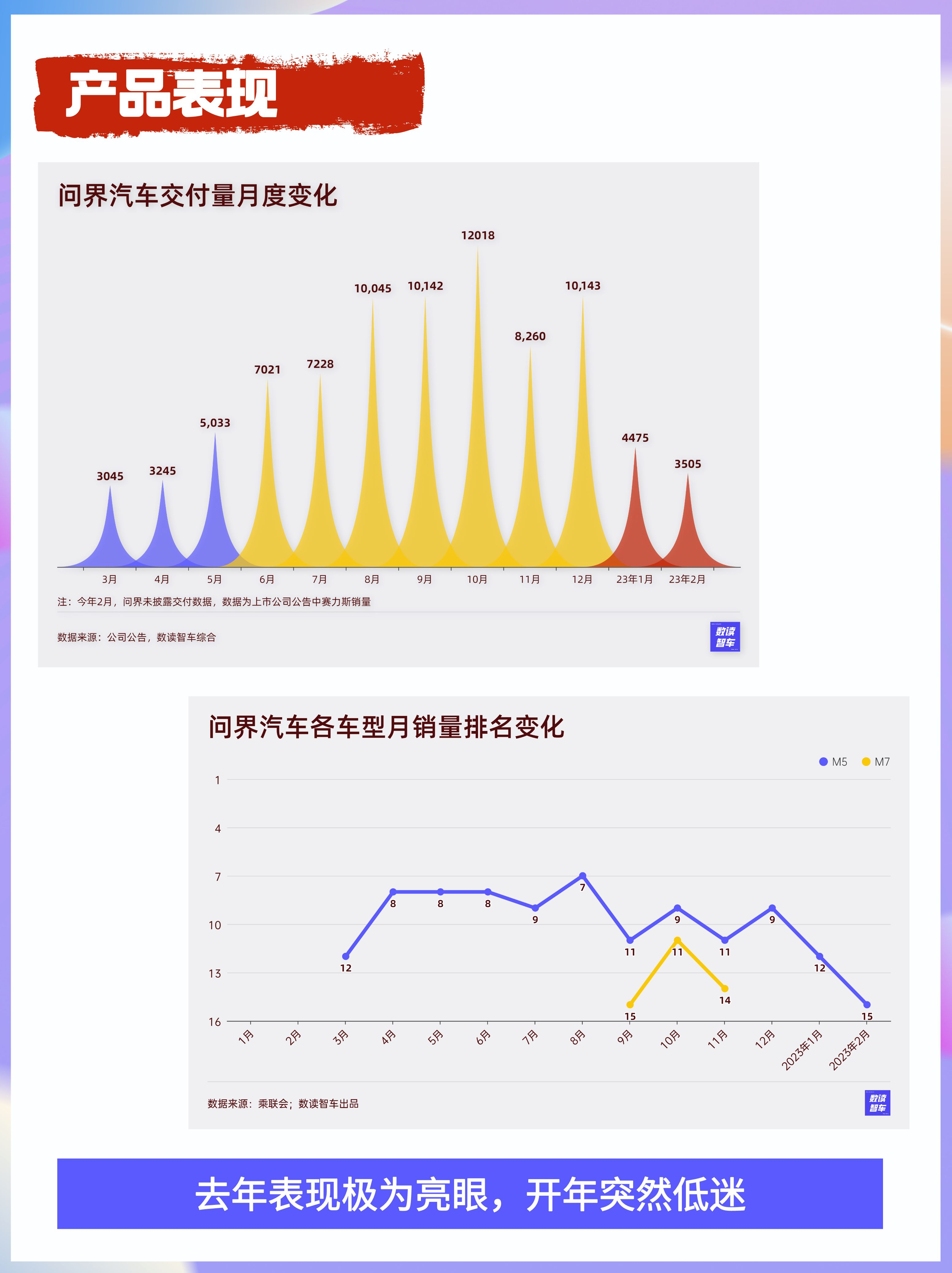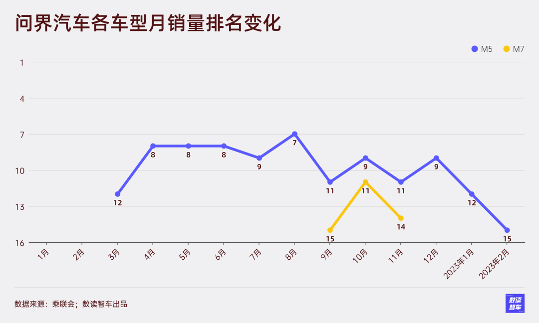 M7作为新款车型却表现出颓势,最初交付的几个月登上过榜单,但随后便跌落榜单,目前仍然未能重新回归。