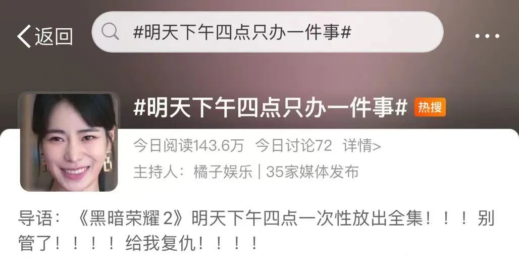 复仇剧一直是观众聚焦的热点。JTBC历史收视率第一的《夫妻的世界》,是完美人妻复仇出轨丈夫的故事,近6年韩国三大台收视率第一的《顶楼》,主线也是女主角为惨死的女儿复仇的故事。在《黑暗荣耀》播出前,国内社交媒体最火的韩剧,同时也是JTBC历史收视率第二的《财阀家的小儿子》,同样是一部重生设定的复仇剧。