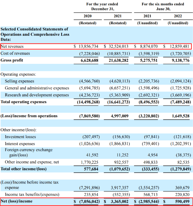 不过,尽管号称覆盖近千家企业及政府部门,但事实上,小i机器人多年来的营收规模始终偏小且不稳定。公开信息显示,小i机器人2015年全年、2016年全年及2017年上半年三个报告期内,小i机器人分别实现营收4515万元、8582万元、6511万元,同时对应亏损分别为6079万元、7335万元、1048万元;而2020年全年、2021年全年及2022年上半年,则分别实现营收1386万美元、3252万美元、1286万美元,对应盈利则为-706万美元、368万美元、59万美元。