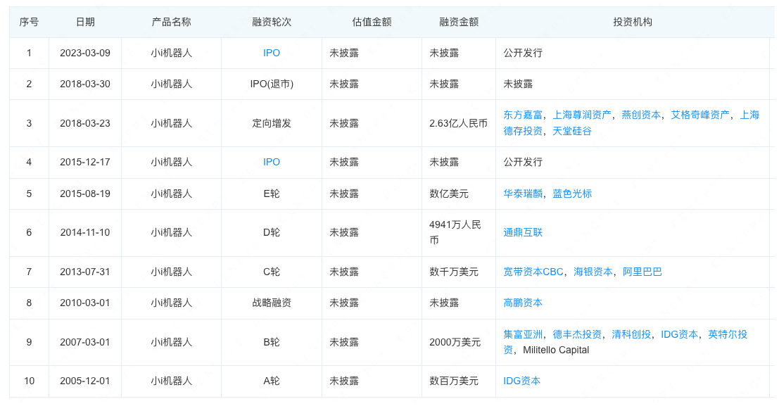 与业务上的高光时刻相呼应,在资本市场小i机器人也曾备受追捧。在登陆纳斯达克之前,长达20年的时间中,小i机器人有过多达6轮融资,其中不乏知名投资机构及巨头公司。