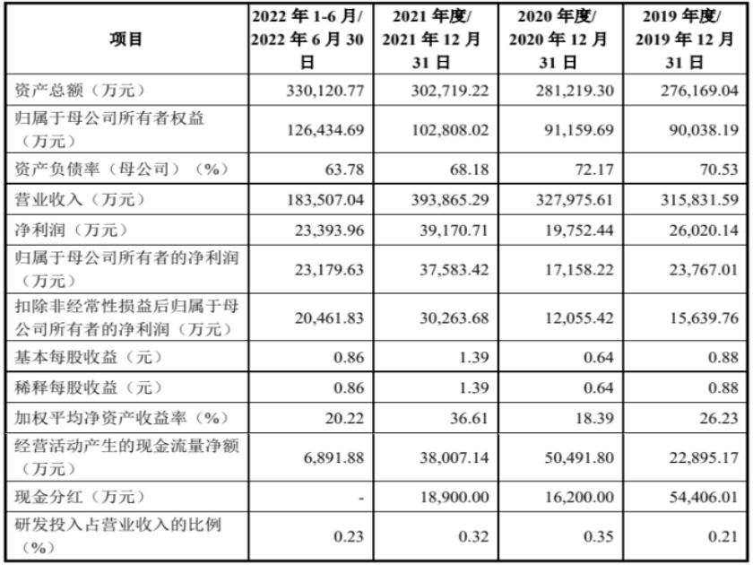以占比最高的短期借款为例,报告期内的短期借款余额分别为 46045.36 万元、20269.91 万元、70524.14 万元和 67270.97 万元,占流动负债的比例分别为 30.10%、13.49%、52.96%和 50.28%。该公司称,2021 年末短期借款账面价值较 2020年末增加 50254.24万元,增长 247.93%,主要原因是公司为满足生产经营及业务扩张的资金需求及支付股利,增加短期借款规模。在保持较高负债率的情况下,依然进行大量分红,并借助募集资金来补充流动资金,偿还贷款,这些情况的存在,也许会影响到投资者的投资选择。