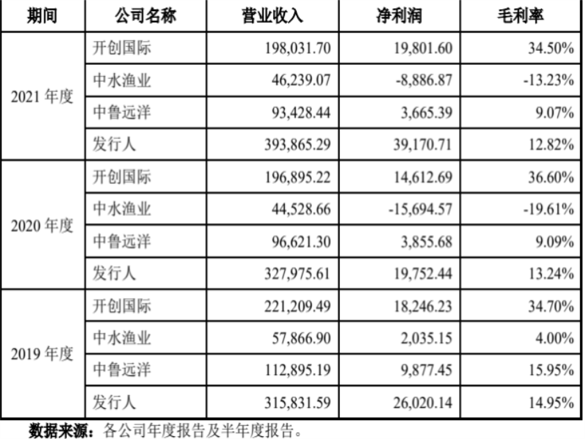 从行业内市场竞争来看,大洋世家近几年的的经营效益取得了不错的成绩。招股书显示,与业内的开创国际、中水渔业和中鲁远洋相比,报告期内大洋世家的营业收入与净利润均高于这几家企业,毛利率则落后于开创国际。