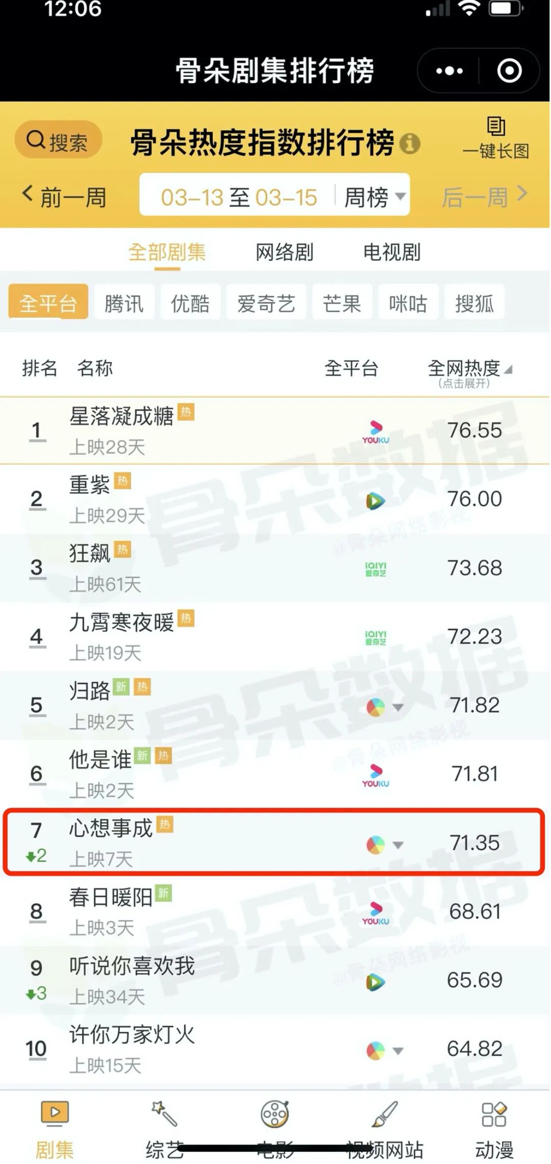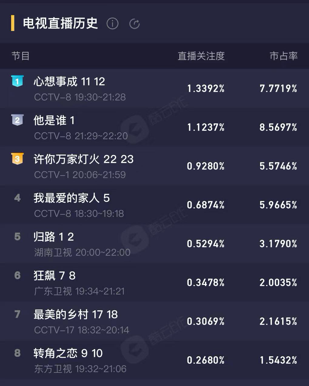 去年的《人世间》证明了,优秀的现实主义生活剧与中国的客厅文化完美契合。随着近期上星仙侠剧《星落凝成糖》完结,围绕北京胡同两姐妹的生活、亲情与爱情的都市家庭剧《心想事成》顺利接档,刚开播不久便稳占酷云电视直播同时段关注度榜首。